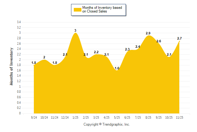 Curnt vs. Same Month 1 Yr Ago: Months of Inventory (Closed Sales)