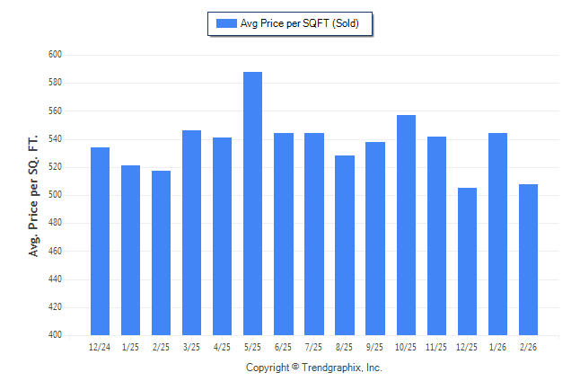 Curnt vs. Same Month 1 Yr Ago: Avg. Sq. Ft. Price (Sold) down-1.7%